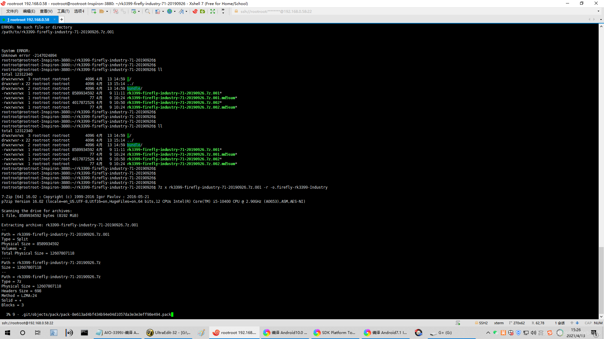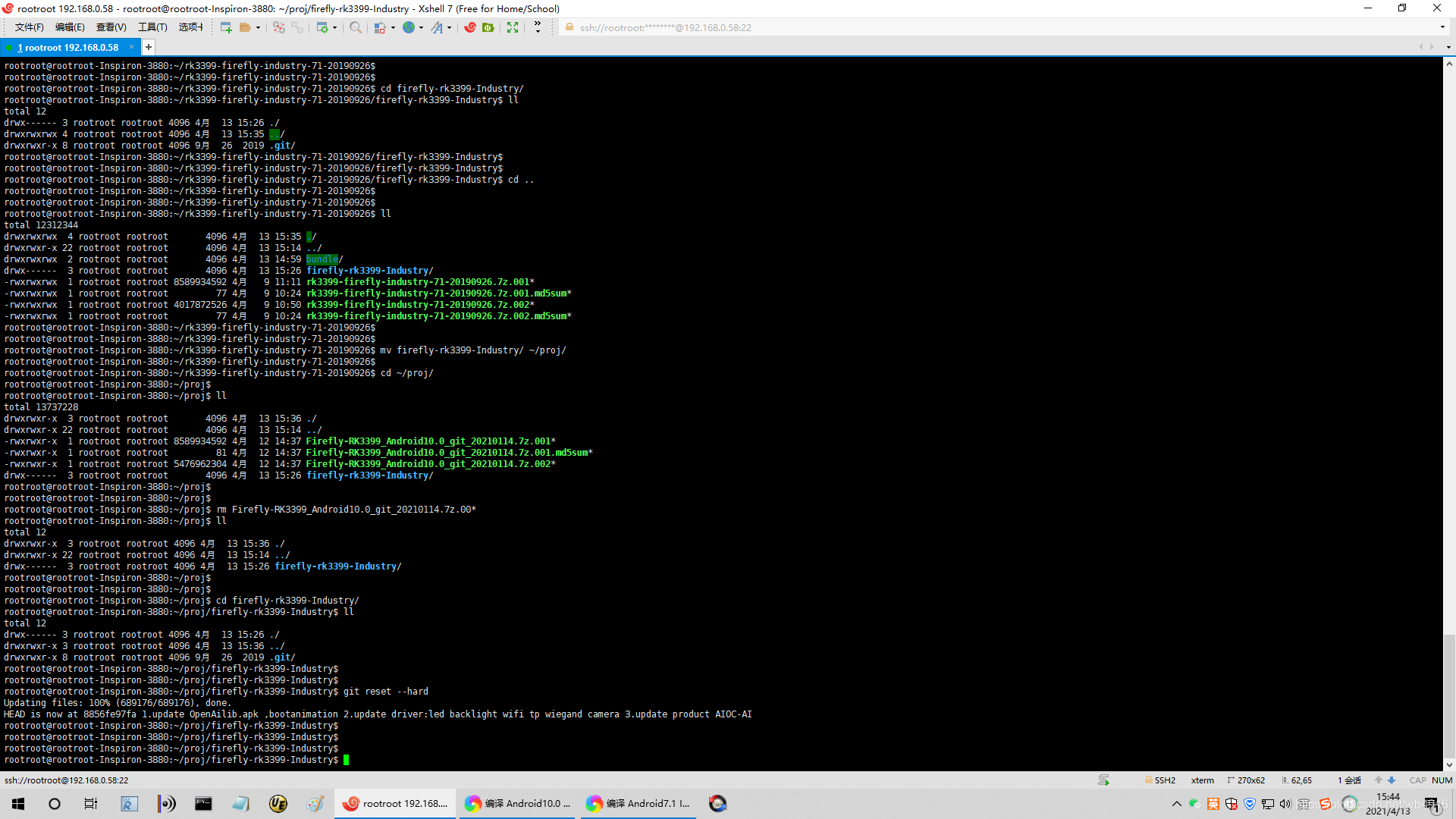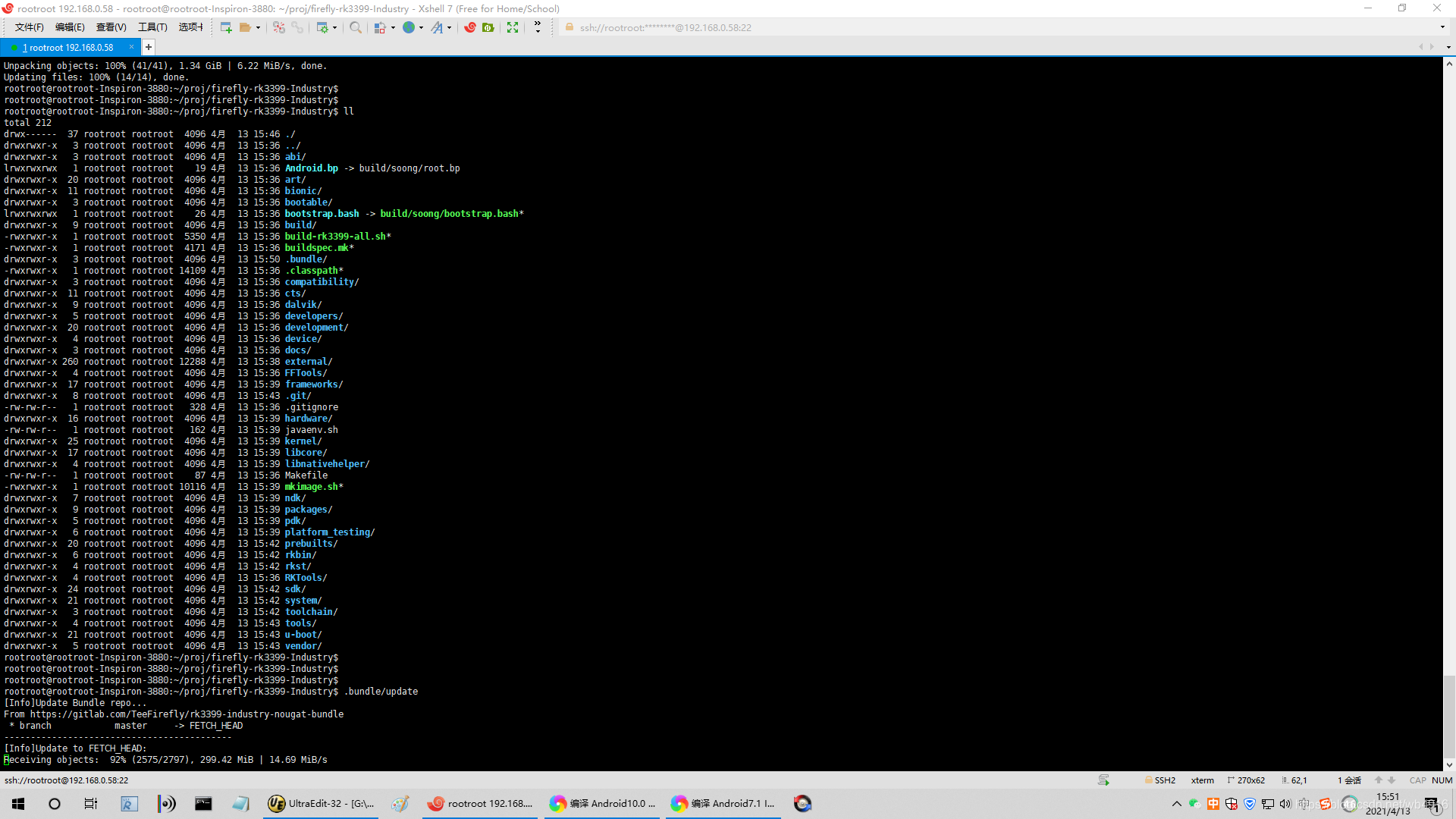 2bc5a41fd1056f1d1ab1f7e84f666bee rk3399-firefly-industry-71-20190926.7z.002 rootroot@rootroot-Inspiron-3880:~$ rootroot@rootroot-Inspiron-3880:~$ rootroot@rootroot-Inspiron-3880:~$ cd RK3399-AIO-J的SDK/ rootroot@rootroot-Inspiron-3880:~/RK3399-AIO-J的SDK$ ll total 28 drwxrwxrwx 7 rootroot rootroot 4096 4月 12 08:14 ./ drwxrwxr-x 21 rootroot rootroot 4096 4月 13 14:26 ../ drwxrwxrwx 3 rootroot rootroot 4096 4月 12 07:42 '01-Android10.0 SDK'/ drwxrwxrwx 3 rootroot rootroot 4096 4月 12 07:49 '02-Android 7.1 SDK源码'/ drwxrwxrwx 3 rootroot rootroot 4096 4月 12 07:55 '03-Android 7.1 SDK源码'/ drwxrwxrwx 3 rootroot rootroot 4096 4月 12 08:09 '04-Android 8.1 SDK源码'/ drwxrwxrwx 3 rootroot rootroot 4096 4月 12 08:14 05-Linux-SDK源码包(仅支持RK3399)/ rootroot@rootroot-Inspiron-3880:~/RK3399-AIO-J的SDK$ rootroot@rootroot-Inspiron-3880:~/RK3399-AIO-J的SDK$ rootroot@rootroot-Inspiron-3880:~/RK3399-AIO-J的SDK$ cd '03-Android 7.1 SDK源码' rootroot@rootroot-Inspiron-3880:~/RK3399-AIO-J的SDK/03-Android 7.1 SDK源码$ ll total 12 drwxrwxrwx 3 rootroot rootroot 4096 4月 12 07:55 ./ drwxrwxrwx 7 rootroot rootroot 4096 4月 12 08:14 ../ drwxrwxrwx 3 rootroot rootroot 4096 4月 12 07:55 Android7.1industry/ rootroot@rootroot-Inspiron-3880:~/RK3399-AIO-J的SDK/03-Android 7.1 SDK源码$ rootroot@rootroot-Inspiron-3880:~/RK3399-AIO-J的SDK/03-Android 7.1 SDK源码$ rootroot@rootroot-Inspiron-3880:~/RK3399-AIO-J的SDK/03-Android 7.1 SDK源码$ cd Android7.1industry/ rootroot@rootroot-Inspiron-3880:~/RK3399-AIO-J的SDK/03-Android 7.1 SDK源码/Android7.1industry$ ll total 12 drwxrwxrwx 3 rootroot rootroot 4096 4月 12 07:55 ./ drwxrwxrwx 3 rootroot rootroot 4096 4月 12 07:55 ../ drwxrwxrwx 3 rootroot rootroot 4096 4月 13 14:59 rk3399-firefly-industry-71-20190926/ rootroot@rootroot-Inspiron-3880:~/RK3399-AIO-J的SDK/03-Android 7.1 SDK源码/Android7.1industry$ rootroot@rootroot-Inspiron-3880:~/RK3399-AIO-J的SDK/03-Android 7.1 SDK源码/Android7.1industry$ rootroot@rootroot-Inspiron-3880:~/RK3399-AIO-J的SDK/03-Android 7.1 SDK源码/Android7.1industry$ cd rk3399-firefly-industry-71-20190926/ rootroot@rootroot-Inspiron-3880:~/RK3399-AIO-J的SDK/03-Android 7.1 SDK源码/Android7.1industry/rk3399-firefly-industry-71-20190926$ ll total 12312340 drwxrwxrwx 3 rootroot rootroot 4096 4月 13 14:59 ./ drwxrwxrwx 3 rootroot rootroot 4096 4月 12 07:55 ../ drwxrwxrwx 2 rootroot rootroot 4096 4月 13 14:59 bundle/ -rwxrwxrwx 1 rootroot rootroot 8589934592 4月 9 11:11 rk3399-firefly-industry-71-20190926.7z.001* -rwxrwxrwx 1 rootroot rootroot 77 4月 9 10:24 rk3399-firefly-industry-71-20190926.7z.001.md5sum* -rwxrwxrwx 1 rootroot rootroot 4017872526 4月 9 10:50 rk3399-firefly-industry-71-20190926.7z.002* -rwxrwxrwx 1 rootroot rootroot 77 4月 9 10:24 rk3399-firefly-industry-71-20190926.7z.002.md5sum* rootroot@rootroot-Inspiron-3880:~/RK3399-AIO-J的SDK/03-Android 7.1 SDK源码/Android7.1industry/rk3399-firefly-industry-71-20190926$ rootroot@rootroot-Inspiron-3880:~/RK3399-AIO-J的SDK/03-Android 7.1 SDK源码/Android7.1industry/rk3399-firefly-industry-71-20190926$ rootroot@rootroot-Inspiron-3880:~/RK3399-AIO-J的SDK/03-Android 7.1 SDK源码/Android7.1industry/rk3399-firefly-industry-71-20190926$ cd .. rootroot@rootroot-Inspiron-3880:~/RK3399-AIO-J的SDK/03-Android 7.1 SDK源码/Android7.1industry$ ll total 12 drwxrwxrwx 3 rootroot rootroot 4096 4月 12 07:55 ./ drwxrwxrwx 3 rootroot rootroot 4096 4月 12 07:55 ../ drwxrwxrwx 3 rootroot rootroot 4096 4月 13 14:59 rk3399-firefly-industry-71-20190926/ rootroot@rootroot-Inspiron-3880:~/RK3399-AIO-J的SDK/03-Android 7.1 SDK源码/Android7.1industry$ rootroot@rootroot-Inspiron-3880:~/RK3399-AIO-J的SDK/03-Android 7.1 SDK源码/Android7.1industry$ rootroot@rootroot-Inspiron-3880:~/RK3399-AIO-J的SDK/03-Android 7.1 SDK源码/Android7.1industry$ mv rk3399-firefly-industry-71-20190926/ ~ rootroot@rootroot-Inspiron-3880:~/RK3399-AIO-J的SDK/03-Android 7.1 SDK源码/Android7.1industry$ rootroot@rootroot-Inspiron-3880:~/RK3399-AIO-J的SDK/03-Android 7.1 SDK源码/Android7.1industry$ rootroot@rootroot-Inspiron-3880:~/RK3399-AIO-J的SDK/03-Android 7.1 SDK源码/Android7.1industry$ cd ~ rootroot@rootroot-Inspiron-3880:~$ rootroot@rootroot-Inspiron-3880:~$ ll total 83552468 drwxrwxr-x 22 rootroot rootroot 4096 4月 13 15:14 ./ drwxr-xr-x 4 root root 4096 4月 15 2020 ../ drwxrwxr-x 28 rootroot rootroot 4096 4月 13 08:12 aosp/ -rw-rw-r-- 1 rootroot rootroot 39732316620 4月 9 13:26 aosp_android-10.0.0_r2.tar.gz -rwxr--r-- 1 rootroot rootroot 3771 2月 1 17:32 bak1.bashrc* -rwxr--r-- 1 rootroot rootroot 3870 4月 9 14:51 bak2node.bashrc* -rw------- 1 rootroot rootroot 7999 4月 13 14:24 .bash_history -rwxr--r-- 1 rootroot rootroot 3890 4月 9 14:52 .bashrc* drwx------ 13 rootroot rootroot 4096 4月 9 15:32 .cache/ drwxr-xr-x 13 rootroot rootroot 4096 4月 9 18:39 .config/ drwxr-xr-x 2 rootroot rootroot 4096 4月 9 10:43 Desktop/ drwxr-xr-x 2 rootroot rootroot 4096 4月 9 10:43 Documents/ drwxr-xr-x 2 rootroot rootroot 4096 4月 9 10:43 Downloads/ drwxrwxrwx 4 rootroot rootroot 4096 4月 13 10:56 fanzong/ -rw-rw-r-- 1 rootroot rootroot 109 4月 9 11:25 .gitconfig -rw------- 1 rootroot rootroot 58 4月 9 11:58 .git-credentials drwx------ 3 rootroot rootroot 4096 4月 9 10:45 .gnupg/ drwxr-xr-x 3 rootroot rootroot 4096 4月 9 10:43 .local/ drwxr-xr-x 2 rootroot rootroot 4096 4月 9 10:43 Music/ drwxrwxr-x 4 rootroot rootroot 4096 4月 9 14:53 .npm/ drwxrwxr-x 19 rootroot rootroot 4096 4月 13 11:41 OpenHarmony/ -rw-rw-r-- 1 rootroot rootroot 45825260471 4月 9 15:29 OpenHarmony6over.tar.gz drwxr-xr-x 2 rootroot rootroot 4096 4月 9 10:50 Pictures/ -rwxr--r-- 1 rootroot rootroot 807 4月 7 09:50 .profile* drwxrwxr-x 2 rootroot rootroot 4096 4月 12 14:37 proj/ drwxr-xr-x 2 rootroot rootroot 4096 4月 9 10:43 Public/ -rw------- 1 rootroot rootroot 7 4月 9 11:10 .python_history -rw-rw-r-- 1 rootroot rootroot 170 4月 9 11:26 .repo_.gitconfig.json drwxrwxrwx 7 rootroot 