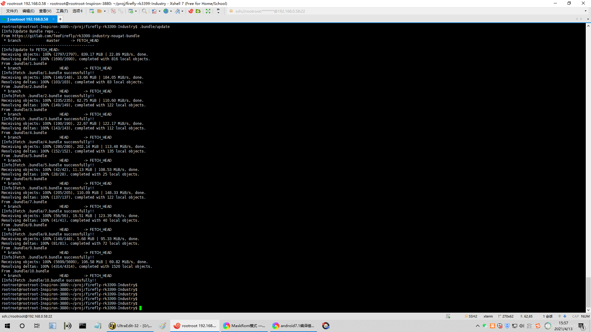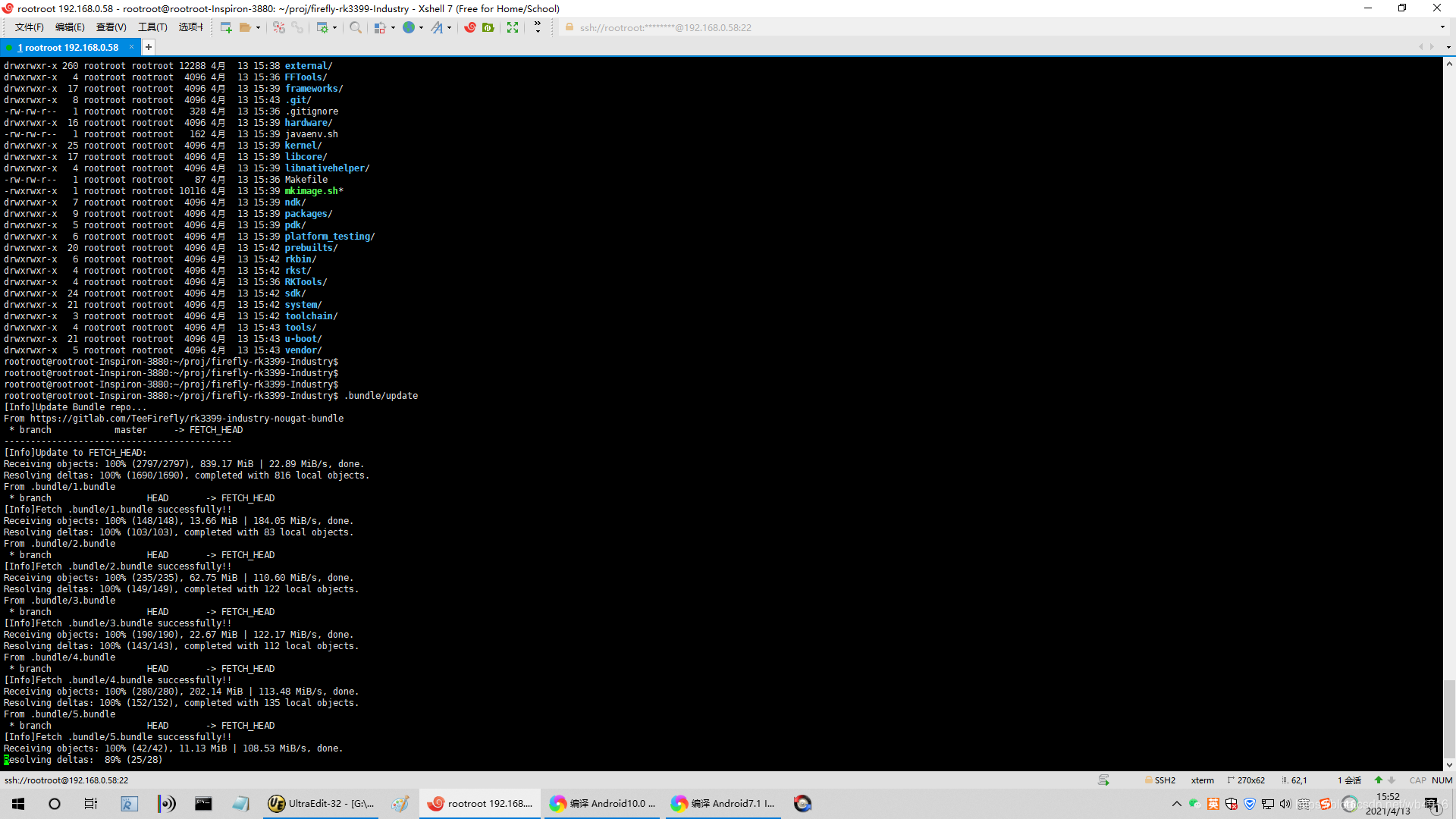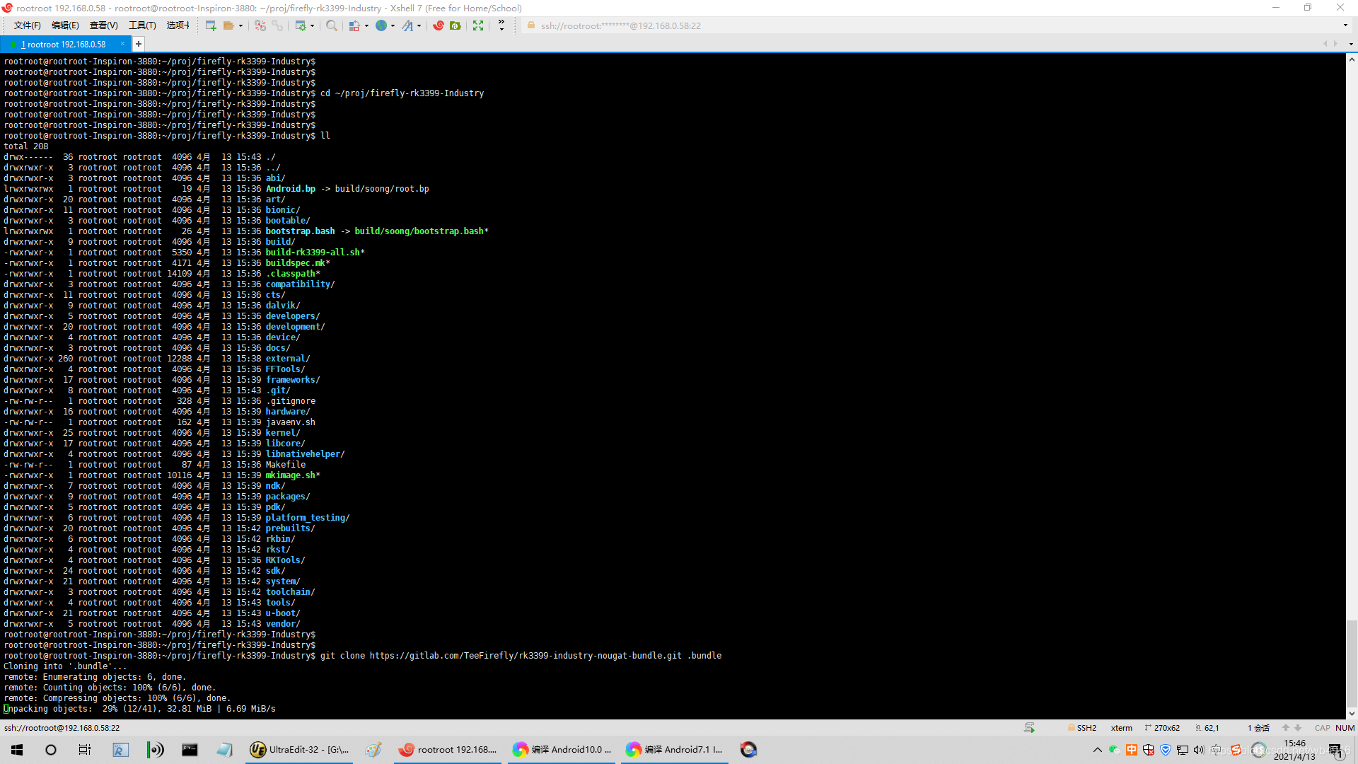 git rebase FETCH_HEAD 百度云下载[bundle压缩包] rootroot@rootroot-Inspiron-3880:~/proj/firefly-rk3399-Industry$ rootroot@rootroot-Inspiron-3880:~/proj/firefly-rk3399-Industry$ rootroot@rootroot-Inspiron-3880:~/proj/firefly-rk3399-Industry$ cd ~/proj/firefly-rk3399-Industry rootroot@rootroot-Inspiron-3880:~/proj/firefly-rk3399-Industry$ rootroot@rootroot-Inspiron-3880:~/proj/firefly-rk3399-Industry$ rootroot@rootroot-Inspiron-3880:~/proj/firefly-rk3399-Industry$ rootroot@rootroot-Inspiron-3880:~/proj/firefly-rk3399-Industry$ ll total 208 drwx------ 36 rootroot rootroot 4096 4月 13 15:43 ./ drwxrwxr-x 3 rootroot rootroot 4096 4月 13 15:36 ../ drwxrwxr-x 3 rootroot rootroot 4096 4月 13 15:36 abi/ lrwxrwxrwx 1 rootroot rootroot 19 4月 13 15:36 Android.bp -> build/soong/root.bp drwxrwxr-x 20 rootroot rootroot 4096 4月 13 15:36 art/ drwxrwxr-x 11 rootroot rootroot 4096 4月 13 15:36 bionic/ drwxrwxr-x 3 rootroot rootroot 4096 4月 13 15:36 bootable/ lrwxrwxrwx 1 rootroot rootroot 26 4月 13 15:36 bootstrap.bash -> build/soong/bootstrap.bash* drwxrwxr-x 9 rootroot rootroot 4096 4月 13 15:36 build/ -rwxrwxr-x 1 rootroot rootroot 5350 4月 13 15:36 build-rk3399-all.sh* -rwxrwxr-x 1 rootroot rootroot 4171 4月 13 15:36 buildspec.mk* -rwxrwxr-x 1 rootroot rootroot 14109 4月 13 15:36 .classpath* drwxrwxr-x 3 rootroot rootroot 4096 4月 13 15:36 compatibility/ drwxrwxr-x 11 rootroot rootroot 4096 4月 13 15:36 cts/ drwxrwxr-x 9 rootroot rootroot 4096 4月 13 15:36 dalvik/ drwxrwxr-x 5 rootroot rootroot 4096 4月 13 15:36 developers/ drwxrwxr-x 20 rootroot rootroot 4096 4月 13 15:36 development/ drwxrwxr-x 4 rootroot rootroot 4096 4月 13 15:36 device/ drwxrwxr-x 3 rootroot rootroot 4096 4月 13 15:36 docs/ drwxrwxr-x 260 rootroot rootroot 12288 4月 13 15:38 external/ drwxrwxr-x 4 rootroot rootroot 4096 4月 13 15:36 FFTools/ drwxrwxr-x 17 rootroot rootroot 4096 4月 13 15:39 frameworks/ drwxrwxr-x 8 rootroot rootroot 4096 4月 13 15:43 .git/ -rw-rw-r-- 1 rootroot rootroot 328 4月 13 15:36 .gitignore drwxrwxr-x 16 rootroot rootroot 4096 4月 13 15:39 hardware/ -rw-rw-r-- 1 rootroot rootroot 162 4月 13 15:39 javaenv.sh drwxrwxr-x 25 rootroot rootroot 4096 4月 13 15:39 kernel/ drwxrwxr-x 17 rootroot rootroot 4096 4月 13 15:39 libcore/ drwxrwxr-x 4 rootroot rootroot 4096 4月 13 15:39 libnativehelper/ -rw-rw-r-- 1 rootroot rootroot 87 4月 13 15:36 Makefile -rwxrwxr-x 1 rootroot rootroot 10116 4月 13 15:39 mkimage.sh* drwxrwxr-x 7 rootroot rootroot 4096 4月 13 15:39 ndk/ drwxrwxr-x 9 rootroot rootroot 4096 4月 13 15:39 packages/ drwxrwxr-x 5 rootroot rootroot 4096 4月 13 15:39 pdk/ drwxrwxr-x 6 rootroot rootroot 4096 4月 13 15:39 platform_testing/ drwxrwxr-x 20 rootroot rootroot 4096 4月 13 15:42 prebuilts/ drwxrwxr-x 6 rootroot rootroot 4096 4月 13 15:42 rkbin/ drwxrwxr-x 4 rootroot rootroot 4096 4月 13 15:42 rkst/ drwxrwxr-x 4 rootroot rootroot 4096 4月 13 15:36 RKTools/ drwxrwxr-x 24 rootroot rootroot 4096 4月 13 15:42 sdk/ drwxrwxr-x 21 rootroot rootroot 4096 4月 13 15:42 system/ drwxrwxr-x 3 rootroot rootroot 4096 4月 13 15:42 toolchain/ drwxrwxr-x 4 rootroot rootroot 4096 4月 13 15:43 tools/ drwxrwxr-x 21 rootroot rootroot 4096 4月 13 15:43 u-boot/ drwxrwxr-x 5 rootroot rootroot 4096 4月 13 15:43 vendor/ rootroot@rootroot-Inspiron-3880:~/proj/firefly-rk3399-Industry$ rootroot@rootroot-Inspiron-3880:~/proj/firefly-rk3399-Industry$ rootroot@rootroot-Inspiron-3880:~/proj/firefly-rk3399-Industry$ git clone https://gitlab.com/TeeFirefly/rk3399-industry-nougat-bundle.git .bundle Cloning into '.bundle'... remote: Enumerating objects: 6, done. remote: Counting objects: 100% (6/6), done. remote: Compressing objects: 100% (6/6), done. remote: Total 41 (delta 1), reused 0 (delta 0), pack-reused 35 Unpacking objects: 100% (41/41), 1.34 GiB | 6.22 MiB/s, done. Updating files: 100% (14/14), done. rootroot@rootroot-Inspiron-3880:~/proj/firefly-rk3399-Industry$ rootroot@rootroot-Inspiron-3880:~/proj/firefly-rk3399-Industry$ rootroot@rootroot-Inspiron-3880:~/proj/firefly-rk3399-Industry$ ll total 212 drwx------ 37 rootroot rootroot 4096 4月 13 15:46 ./ drwxrwxr-x 3 rootroot rootroot 4096 4月 13 15:36 ../ drwxrwxr-x 3 rootroot rootroot 4096 4月 13 15:36 abi/ lrwxrwxrwx 1 rootroot rootroot 19 4月 13 15:36 Android.bp -> build/soong/root.bp drwxrwxr-x 20 rootroot rootroot 4096 4月 13 15:36 art/ drwxrwxr-x 11 rootroot rootroot 4096 4月 13 15:36 bionic/ drwxrwxr-x 3 rootroot rootroot 4096 4月 13 15:36 bootable/ lrwxrwxrwx 1 rootroot rootroot 26 4月 13 15:36 bootstrap.bash -> build/soong/bootstrap.bash* drwxrwxr-x 9 rootroot rootroot 4096 4月 13 15:36 build/ -rwxrwxr-x 1 rootroot rootroot 5350 4月 13 15:36 build-rk3399-all.sh* -rwxrwxr-x 1 rootroot rootroot 4171 4月 13 15:36 buildspec.mk* drwxrwxr-x 3 rootroot rootroot 4096 4月 13 15:50 .bundle/ -rwxrwxr-x 1 rootroot rootroot 14109 4月 13 15:36 .classpath* drwxrwxr-x 3 rootroot rootroot 4096 4月 13 15:36 compatibility/ drwxrwxr-x 11 rootroot rootroot 4096 4月 13 15:36 cts/ drwxrwxr-x 9 rootroot rootroot 4096 4月 13 15:36 dalvik/ drwxrwxr-x 5 rootroot rootroot 4096 4月 13 15:36 developers/ drwxrwxr-x 20 rootroot rootroot 4096 4月 13 15:36 development/ drwxrwxr-x 4 rootroot rootroot 4096 4月 13 15:36 device/ drwxrwxr-x 3 rootroot rootroot 4096 4月 13 15:36 docs/ drwxrwxr-x 260 rootroot rootroot 12288 4月 13 15:38 external/ drwxrwxr-x 4 rootroot rootroot 4096 4月 13 15:36 FFTools/ drwxrwxr-x 17 rootroot rootroot 4096 4月 13 15:39 frameworks/ drwxrwxr-x 8 rootroot rootroot 4096 4月 13 15:43 .git/ -rw-rw-r-- 1 rootroot rootroot 328 4月 13 15:36 .gitignore drwxrwxr-x 16 rootroot rootroot 4096 4月 13 15:39 hardware/ -rw-rw-r-- 1 rootroot rootroot 162 4月 13 15:39 javaenv.sh drwxrwxr-x 25 rootroot rootroot 4096 4月 13 15:39 kernel/ drwxrwxr-x 17 rootroot rootroot 4096 4月 13 15:39 libcore/ drwxrwxr-x 4 rootroot rootroot 4096 4月 13 15:39 libnativehelper/ -rw-rw-r-- 1 rootroot rootroot 87 4月 13 15:36 Makefile -rwxr