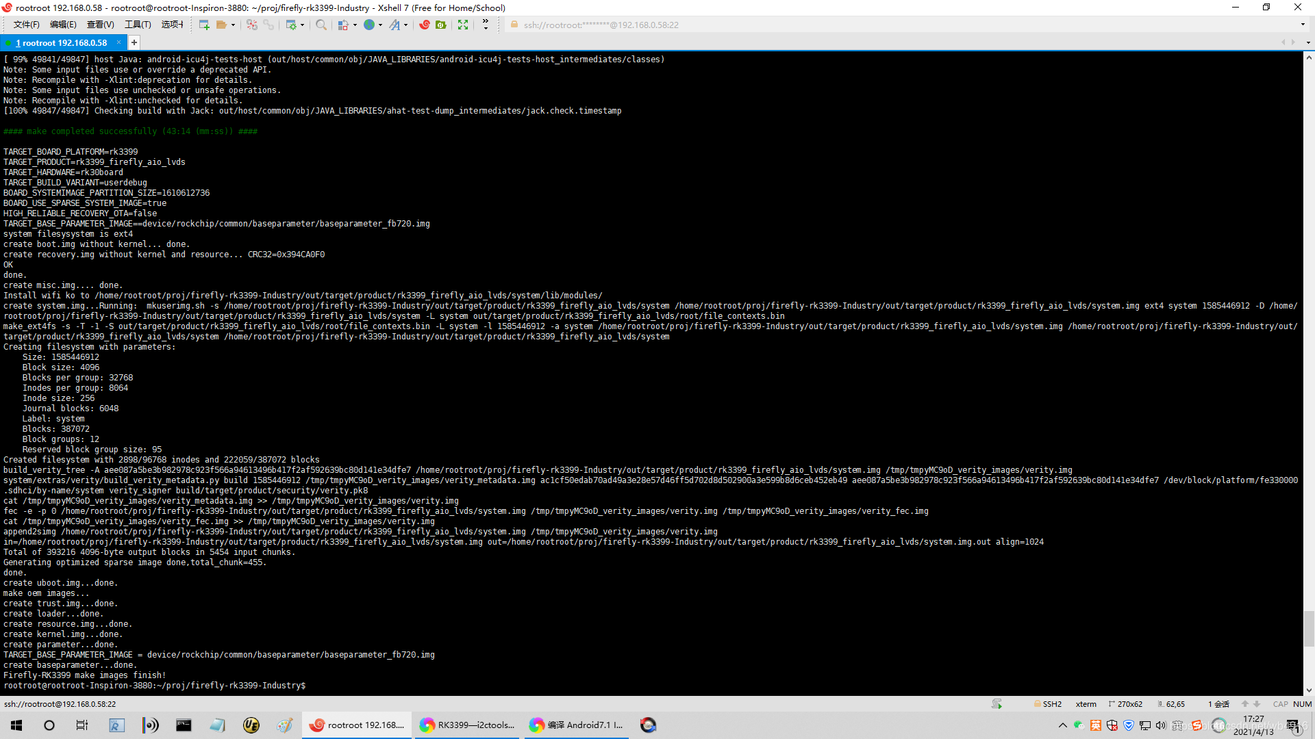 打包完成后将在rockdev/Image-XXX/ 目录下生成统一固件: product名XXX_XXX_日期XXX.img
