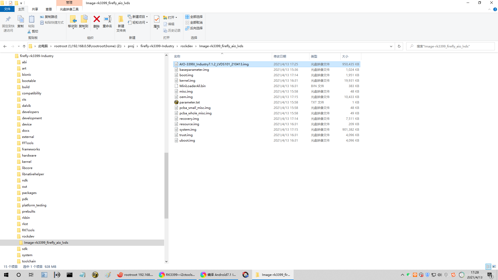 如果使用的是 Windows 系统,将上述映像文件拷贝到 AndroidTool (Windows 下的固件升级工具)的 rockdev\Image 目录中,之后参照升级文档烧写分区映像即可,这样的好处是使用默认配置即可,不用修改文件的路径。